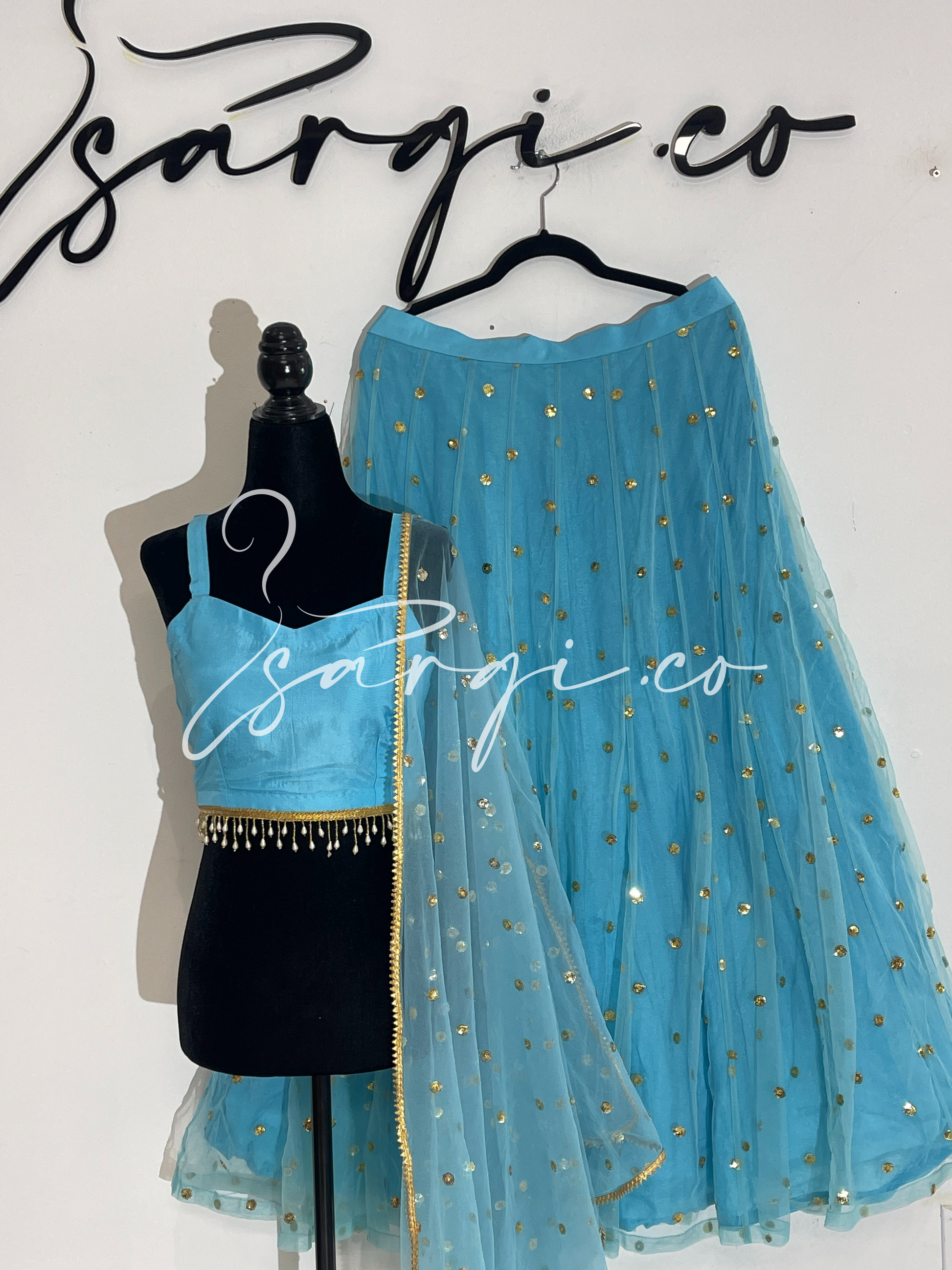 Baby Blue 3 Piece Panel Lehnga Set